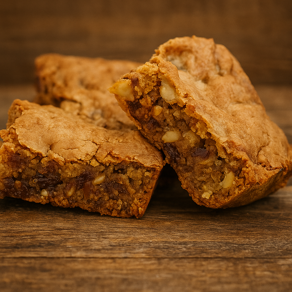 Rich and irresistibly comforting — this tray bake is packed with naturally sweet dates and toasted pecans for a perfect balance of chew and crunch. Baked to golden perfection, it's a cozy slice of nostalgia with every bite. Ideal with a cup of tea or served warm with a dollop of cream.
